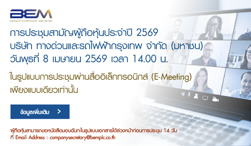 สงวนลิขสิทธิ์ © พ.ศ.2561 บริษัท ทางด่วนและรถไฟฟ้ากรุงเทพ จำกัด (มหาชน)